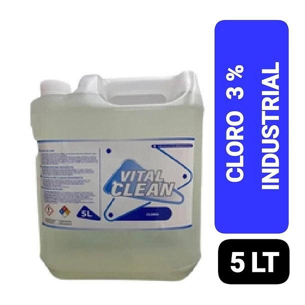 Cloro Industrial 3% Vital Clean 5 litros, desinfección eficaz y alto rendimiento. Ideal para pisos, baños y uso intensivo.